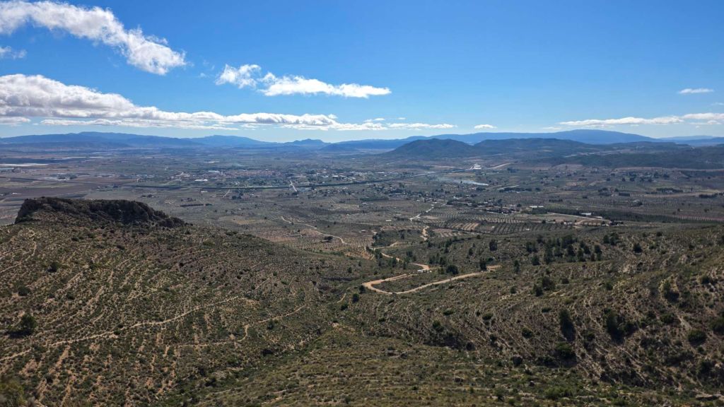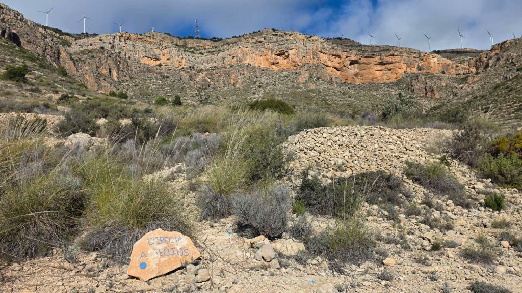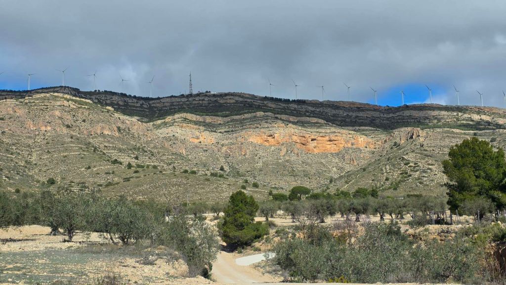 The wind finally dropped enough to head up onto the Caudete escarpment. You could tell it was less windy as they’d allowed the line of windmills along the top of the hill to return to action!