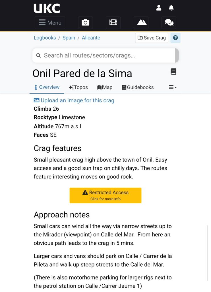 Above the pretty town of Onil lies another sunny and easy access crag – this one doesn’t feature in Rockfax, and wasn’t even on UKC until Helen added it: