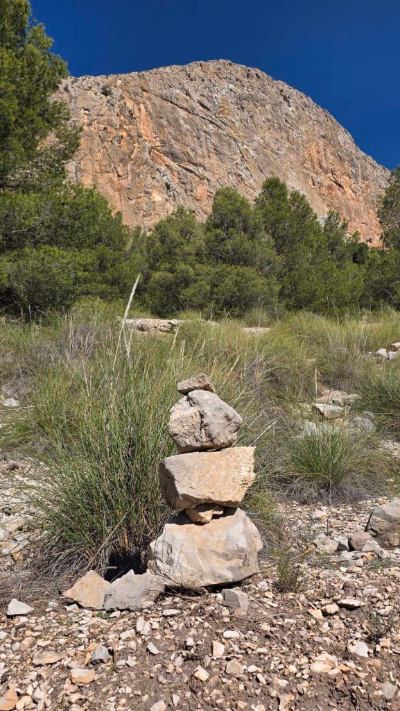 There’s a magnificently cairned path up to the righthand end of the crag and sector Metafisico…