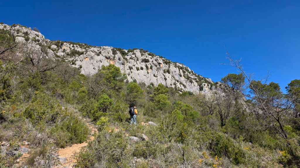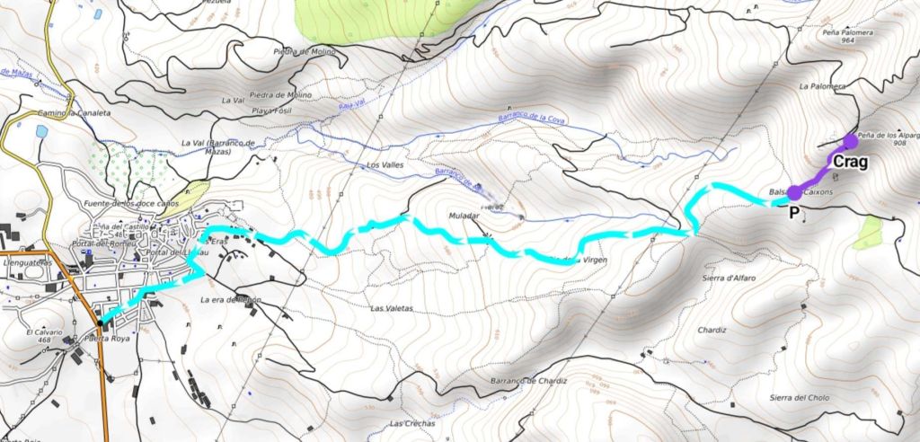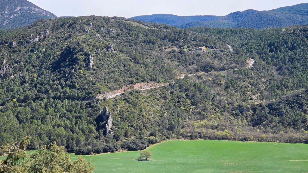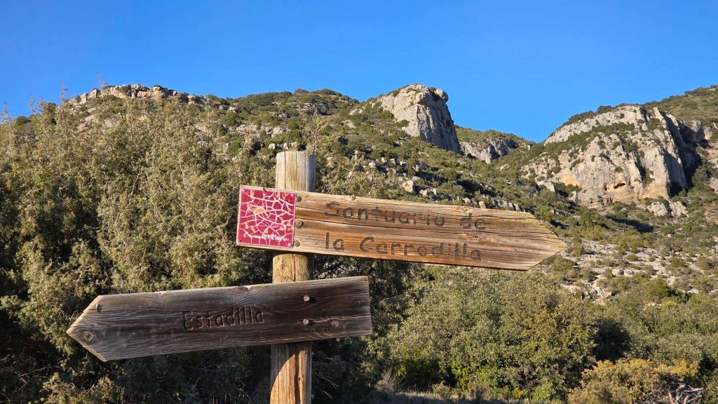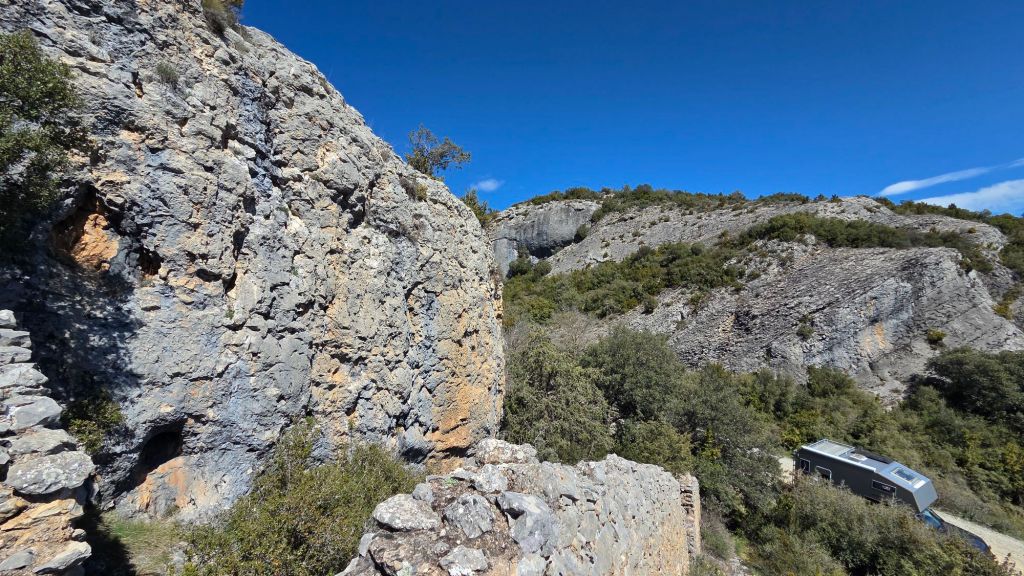 Keep heading for the Santuario de la Carrodilla and park in a clearing a hundred metres up this track, with the crag in sight (which would be a possible van spot).