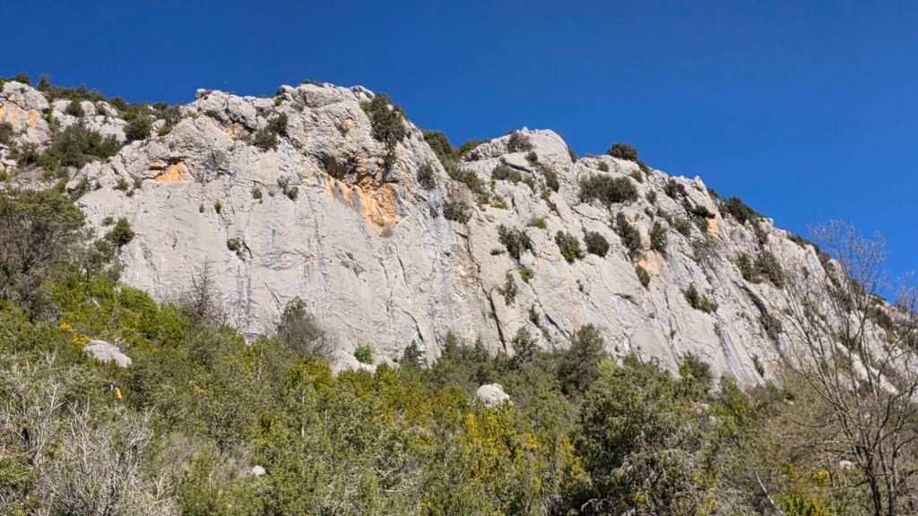 The spectacular Esera gorge slices its way through the rocky hillside, leaving another impressive set of potential crags, with only a fraction of the development potential exploited to date. Sector Garrapotillos could hardly be more roadside…